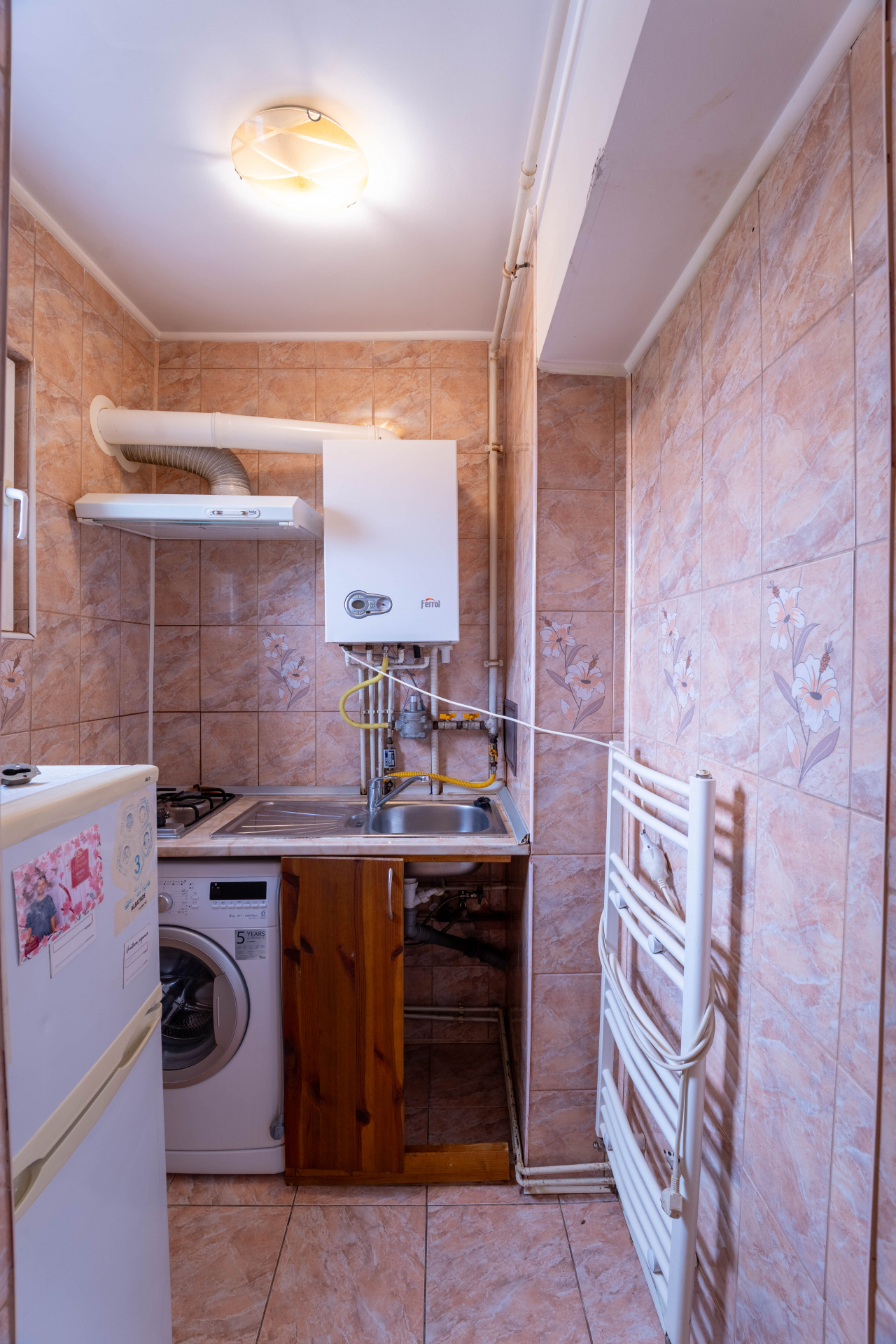 Dupa cum vezi in poze, garsoniera este semidecomandata. Suprafata? 17 mp. La bucatarie are instalata si centrala proprie. Toate utilitatile sunt contorizate separat. Se vinde asa cum o vezi in fotografii, cu masina de spalat si frigiderul.