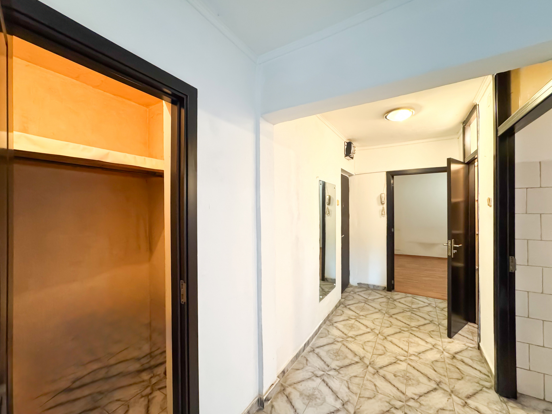 Langa baia mica avem o debara. Pentru cei interesati, cele doua pot fi unite si baia mica transformata in baie plina, cu cabina de dus.