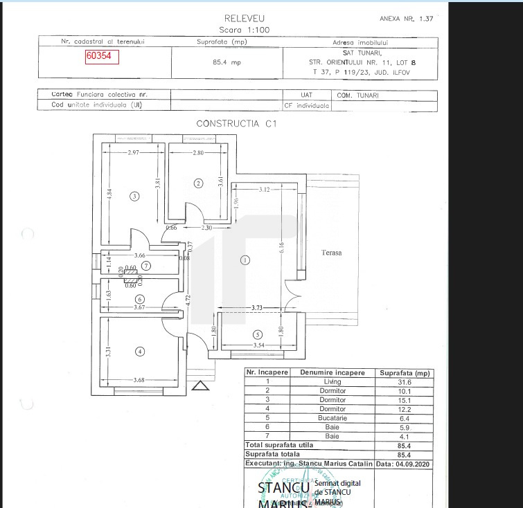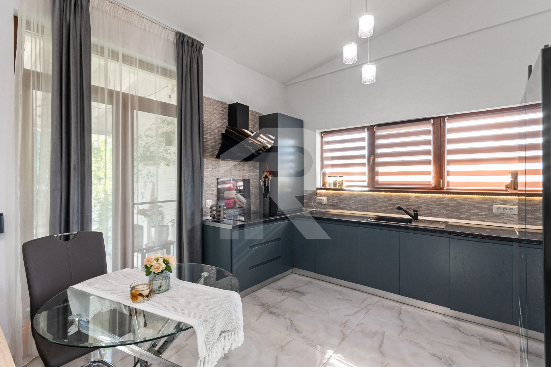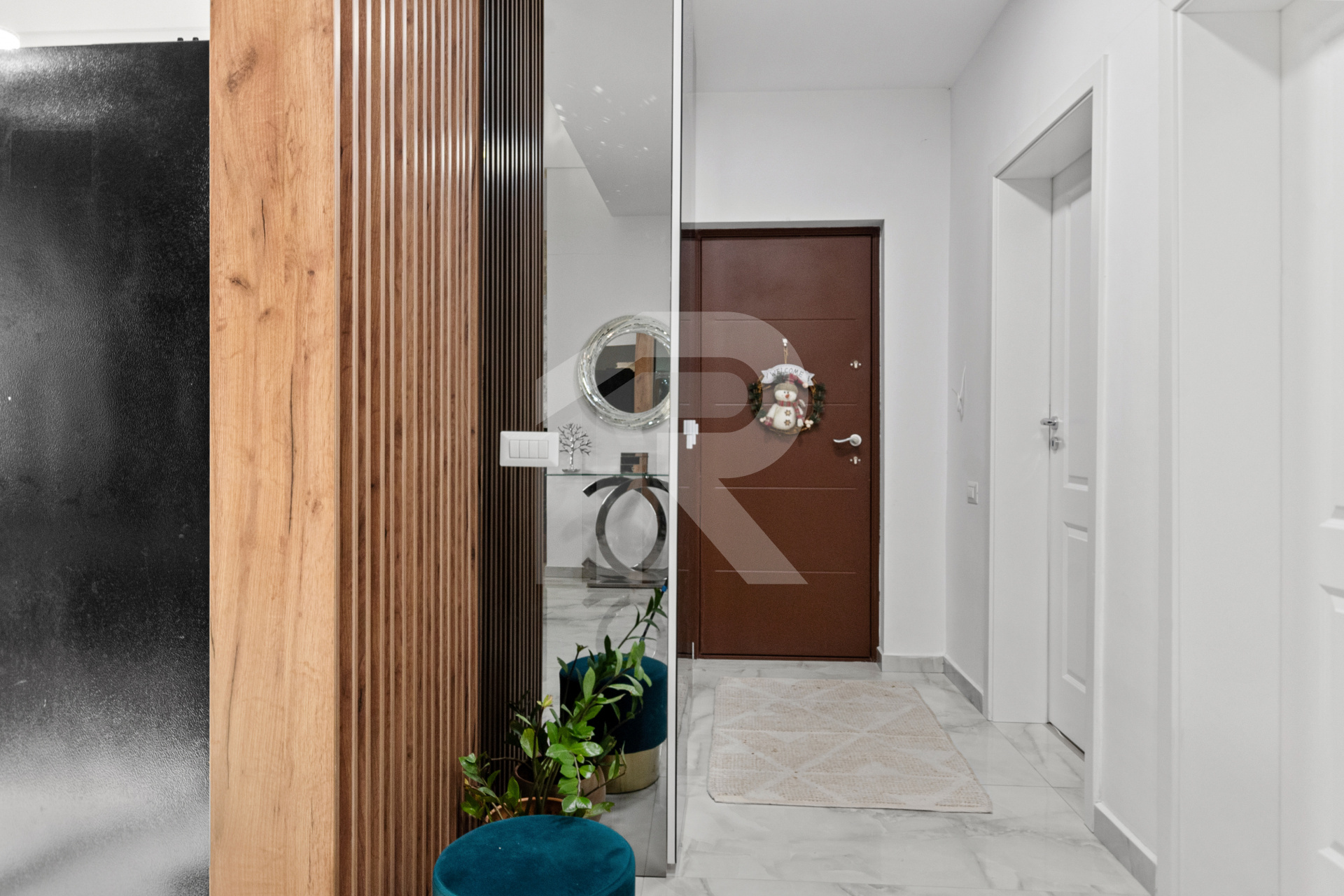 Dispune de 4 camere compartimentate in 85.4mp utili la care se adauga o terasa inchisa in sticla. Incalzirea se realizeaza prin pardoseala cu ajutorul unei centrale termice prin condensare.